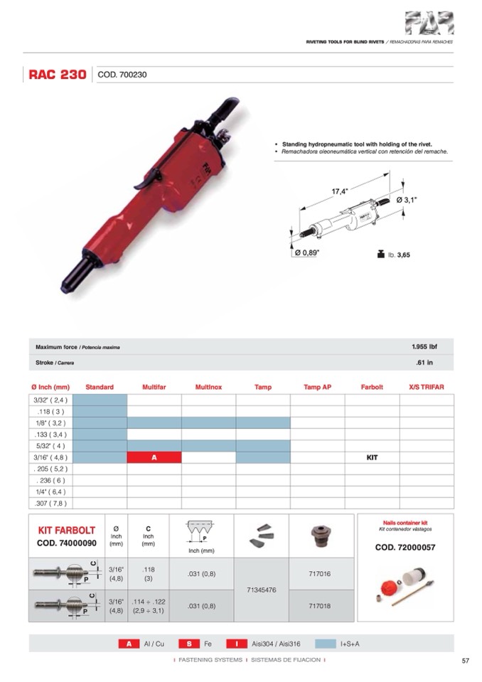 RIVETING TOOLS FOR BLIND RIVETS / REMACHADORAS PARA REMACHES