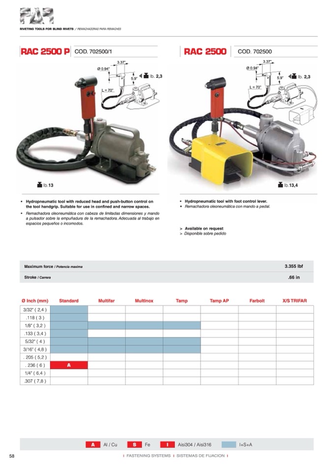 RIVETING TOOLS FOR BLIND RIVETS / REMACHADORAS PARA REMACHES