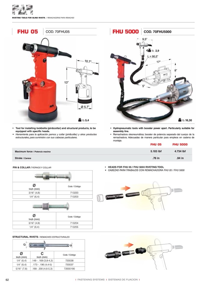 CABEZAS PARA TRABAJOS CON REMACHADORA FHU 05 / FHU 5000