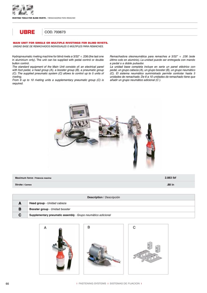 MAIN UNIT FOR SINGLE OR MULTIPLE RIVETINGS FOR BLIND RIVETS.