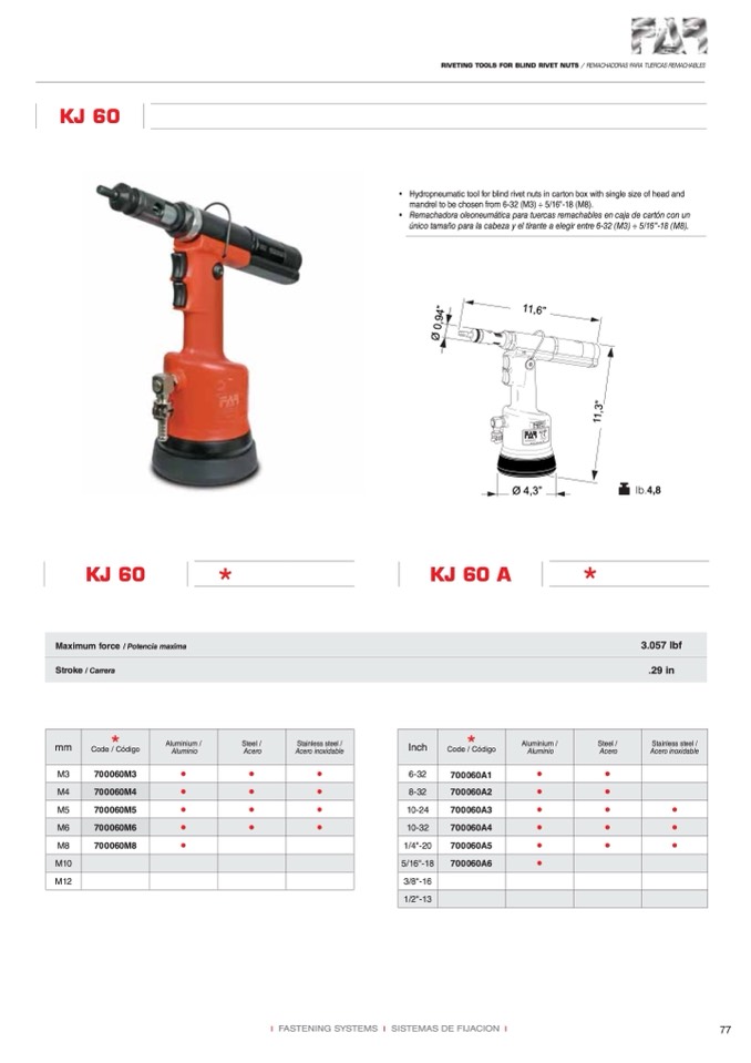 RIVETING TOOLS FOR BLIND RIVET NUTS / REMACHADORAS PARA TUERCAS REMACHABLES