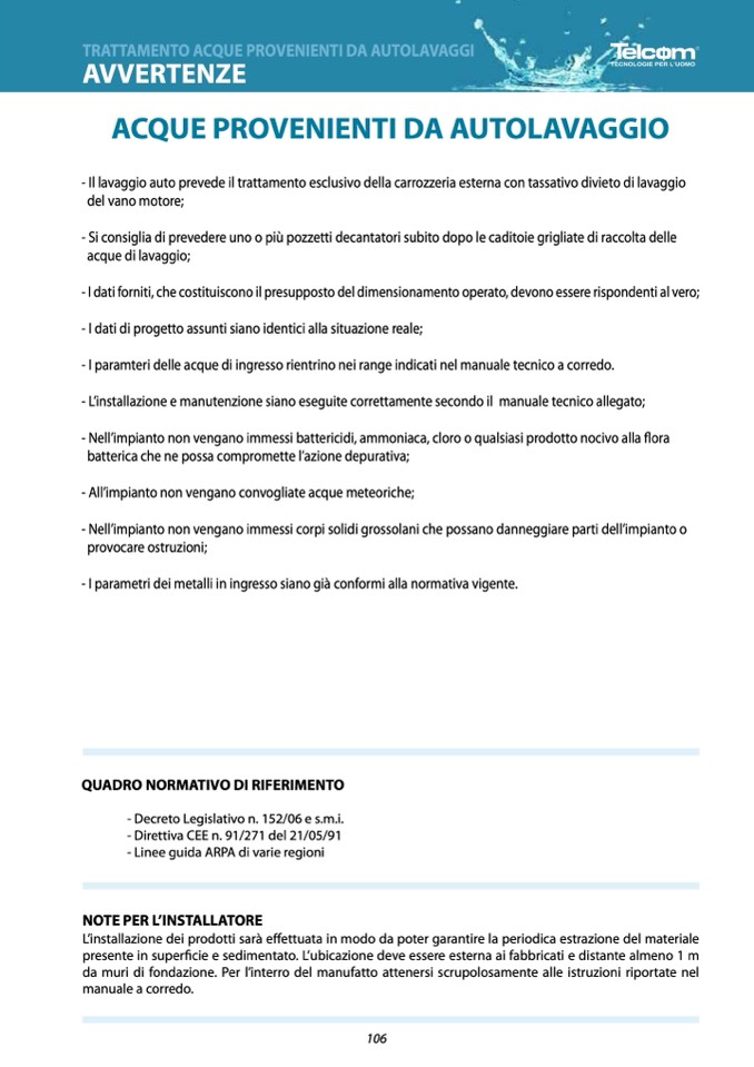 - Nell’impianto non vengano immessi battericidi, ammoniaca, cloro o qualsiasi prodotto nocivo alla flora
