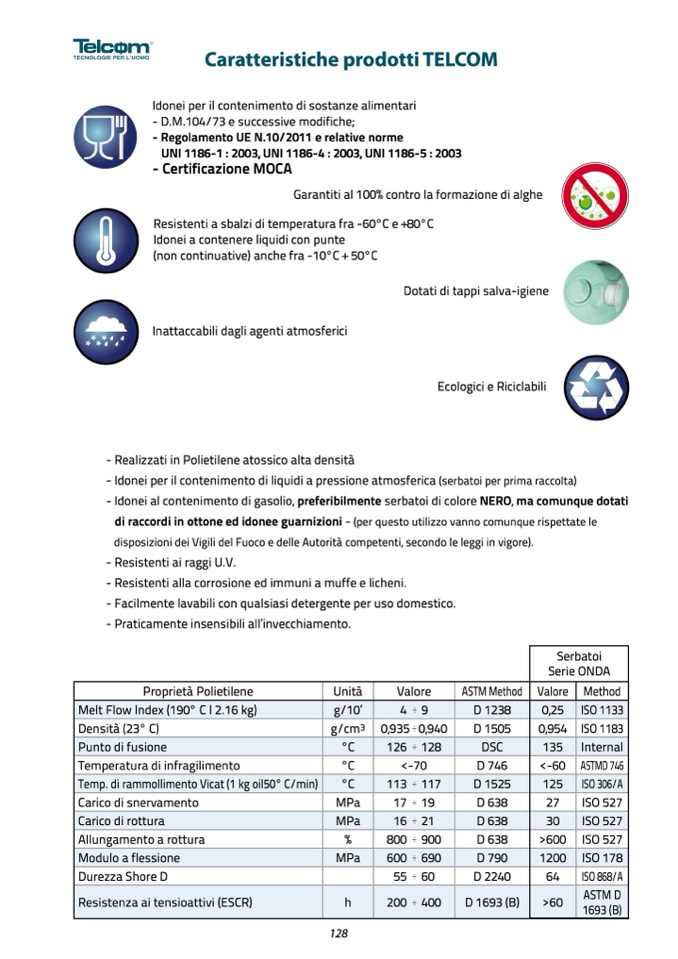 - Idonei al contenimento di gasolio, preferibilmente serbatoi di colore NERO, ma comunque dotati