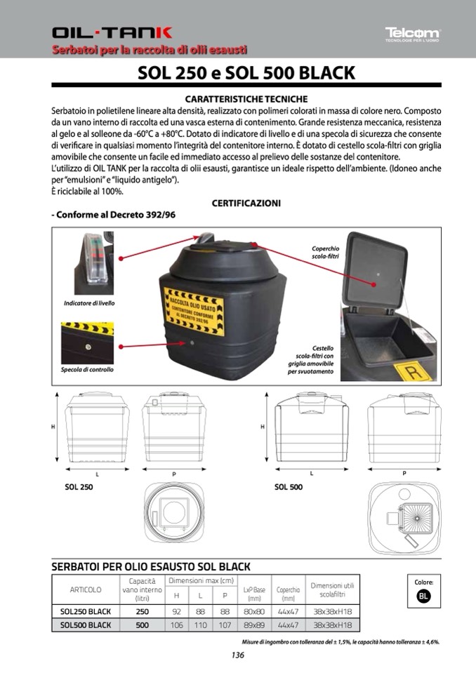 SERBATOI PER OLIO ESAUSTO SOL BLACK