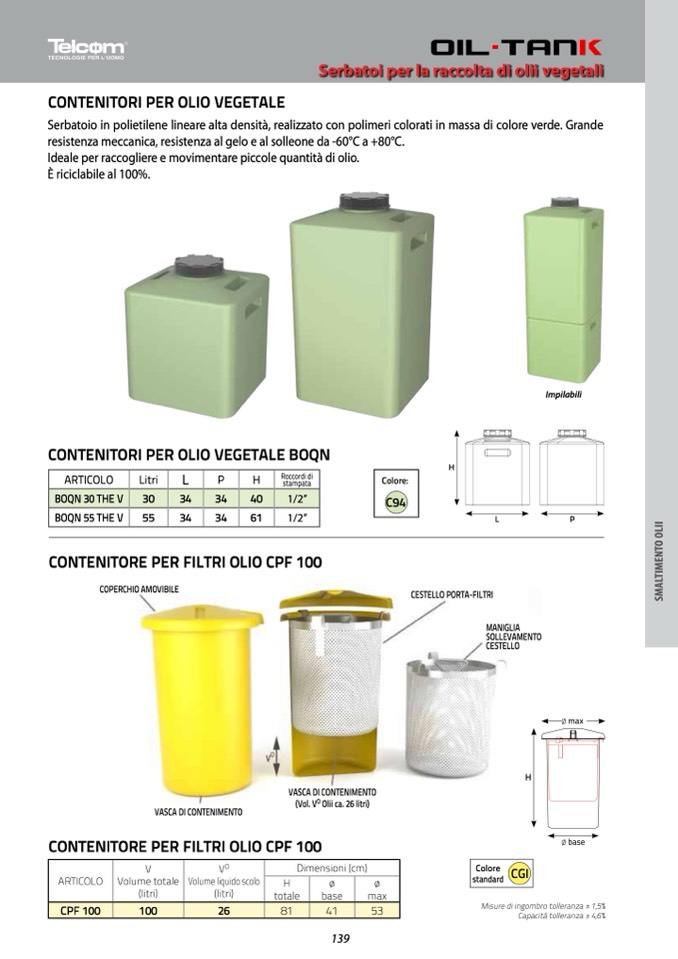 Serbatoi per la raccolta di olii vegetali
