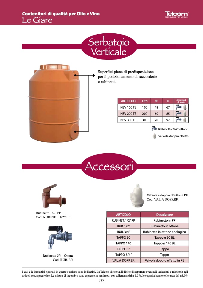 I dati e le immagini riportati in questo catalogo sono indicativi. La Telcom si riserva il diritto di apportare eventuali variazioni o migliorie agli