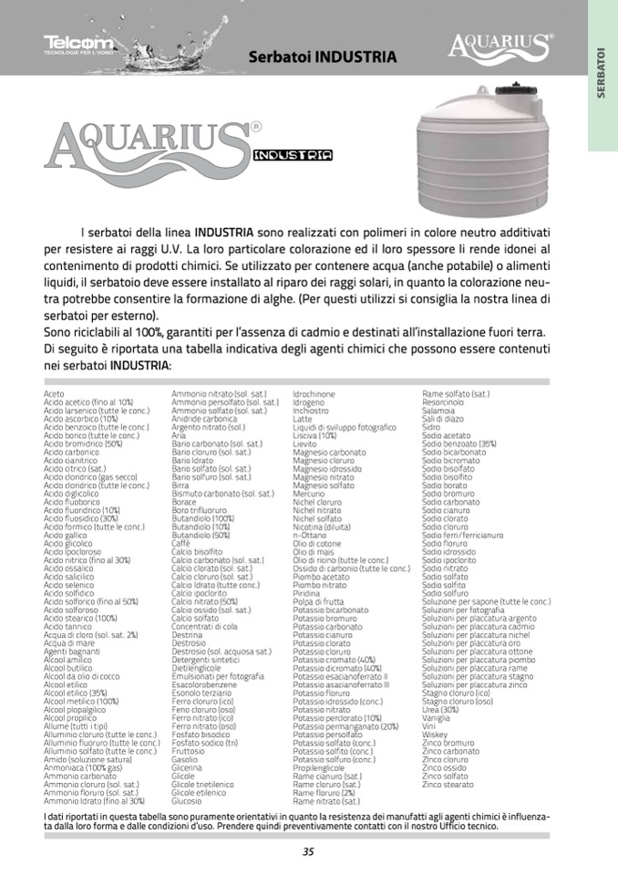 I dati riportati in questa tabella sono puramente orientativi in quanto la resistenza dei manufatti agli agenti chimici è influenza-