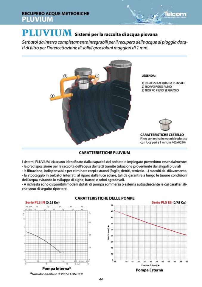 I sistemi PLUVIUM, ciascuno identificato dalla capacità del serbatoio impiegato prevedono essenzialmente: