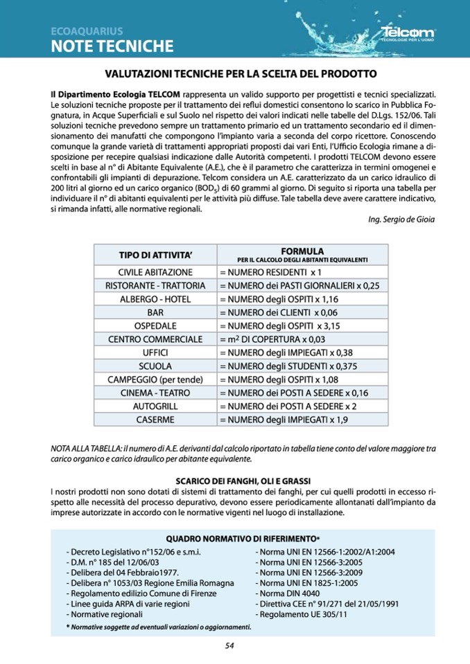 scelti in base al n° di Abitante Equivalente (A.E.), che è il parametro che caratterizza in termini omogenei e
