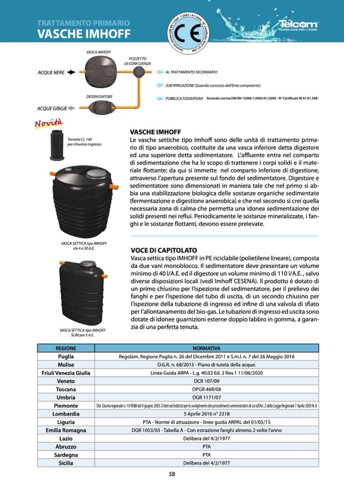 diverse disposizioni locali (vedi Imhoff CESENA). Il prodotto