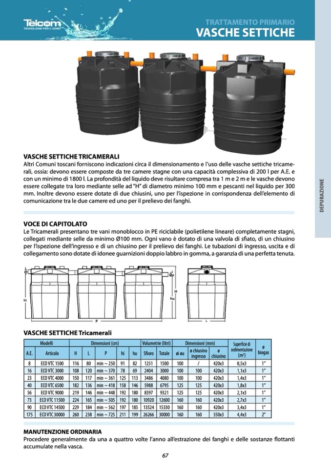 Altri Comuni toscani forniscono indicazioni circa il dimensionamento e l’uso delle vasche settiche tricame-