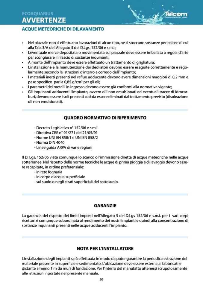 - Decreto Legislativo n° 152/06 e s.m.i.