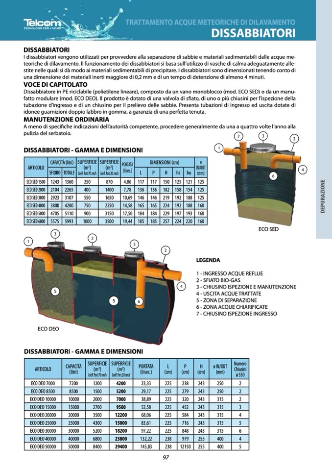 Dissabbiatore in PE riciclabile (polietilene lineare), composto da un vano monoblocco (mod. ECO SED) o da un manu-