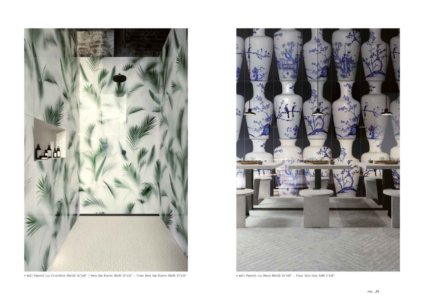 � Wall Paper41 Lux Cristoforo 60x120 24”x48” / Nano Gap Bianco 30x30 12”x12” - Floor Nano Gap Bianco 30x30 12”x12”