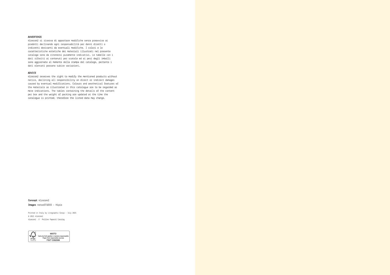 41zero42 si riserva di apportare modifiche senza preavviso ai