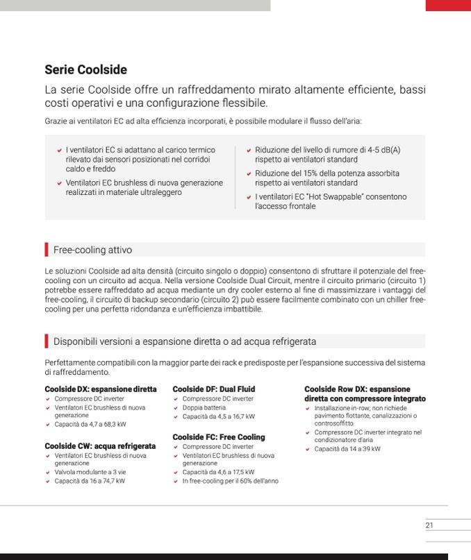 Le soluzioni Coolside ad alta densità (circuito singolo o doppio) consentono di sfruttare il potenziale del free-