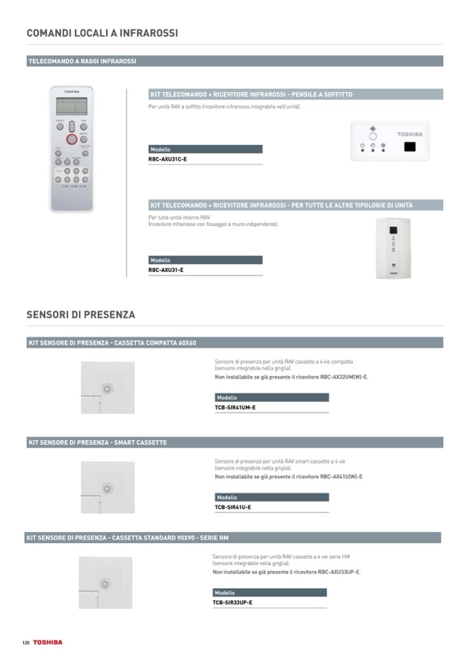 Per unità RAV a soffitto (ricevitore infrarosso integrabile nell’unità).