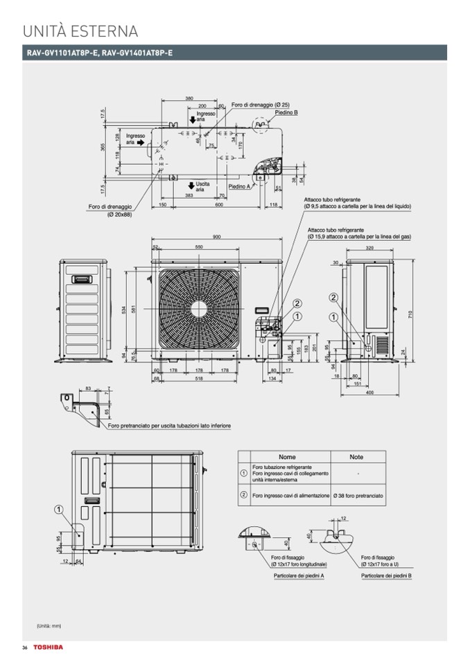 Foro ingresso cavi di alimentazione Ø 38 foro pretranciato
