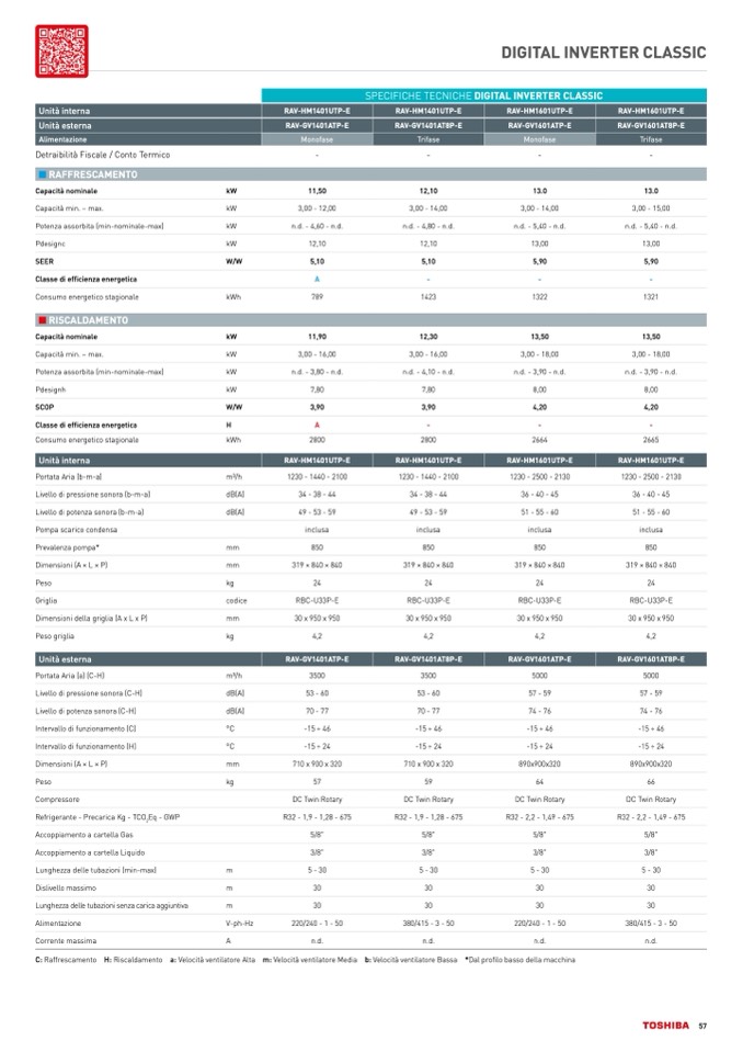 SPECIFICHE TECNICHE DIGITAL INVERTER CLASSIC