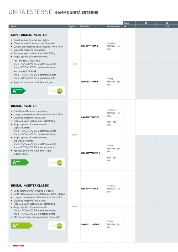 • Applicazione mono-split, twin e triple