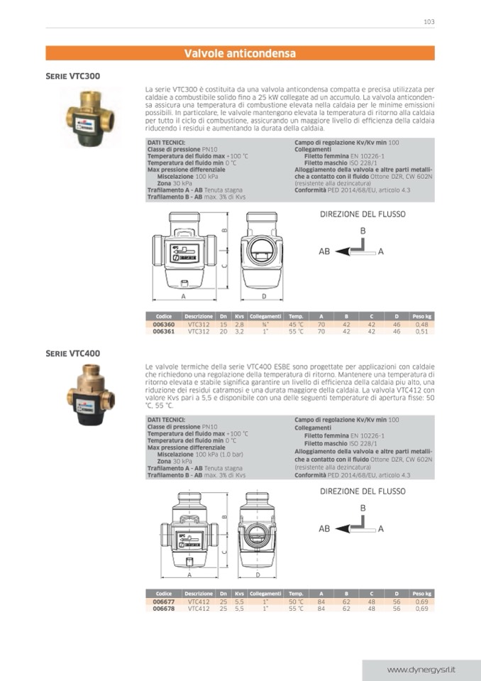 riduzione dei residui catramosi e una durata maggiore della caldaia. La valvola VTC412 con