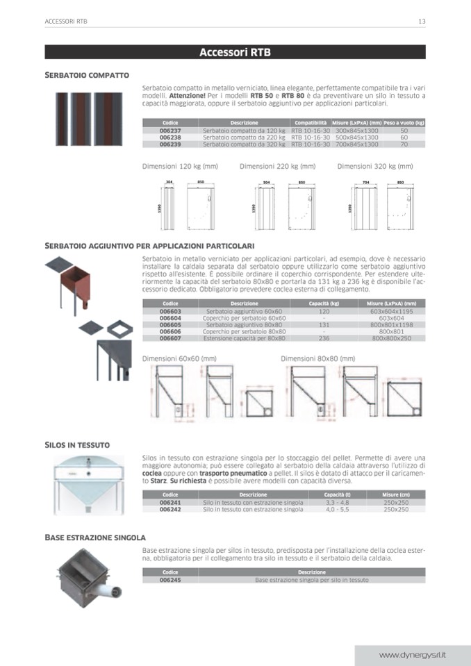 modelli. attenzione! Per i modelli rtb 50 e rtb 80 è da preventivare un silo in tessuto a
