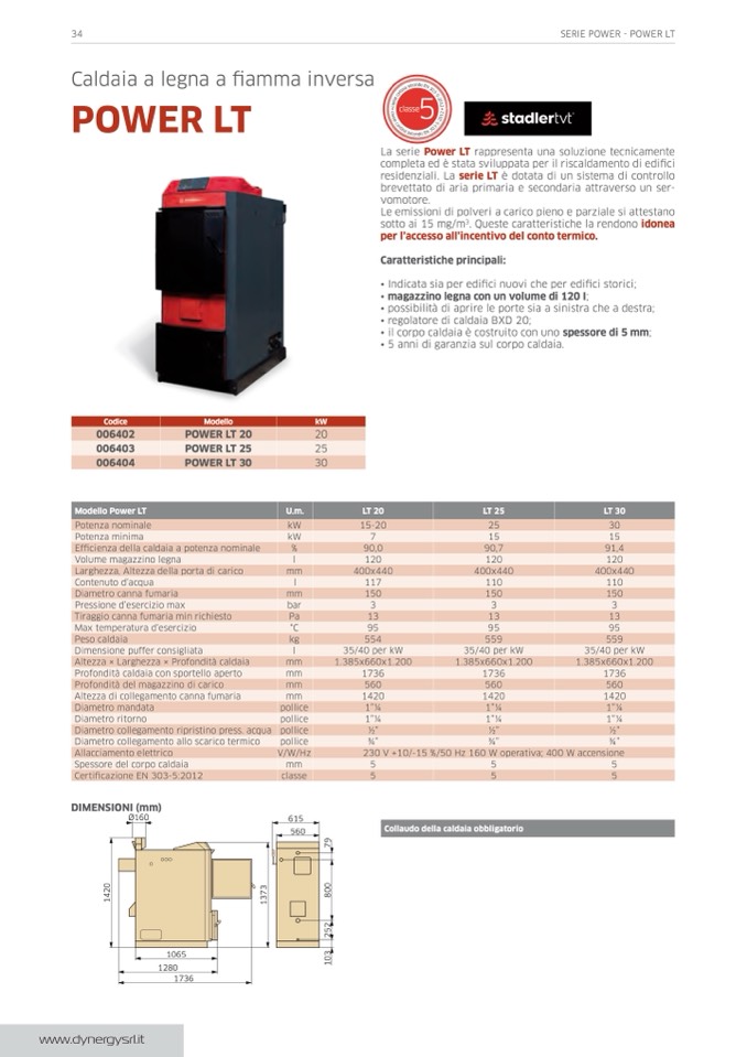 • il corpo caldaia è costruito con uno spessore di 5 mm;