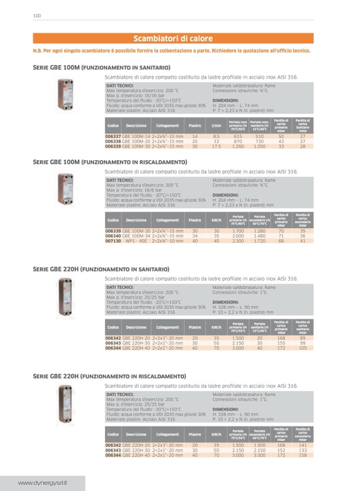 n.b. Per ogni singolo scambiatore è possibile fornire la coibentazione a parte. richiedere la quotazione all’ufficio tecnico.