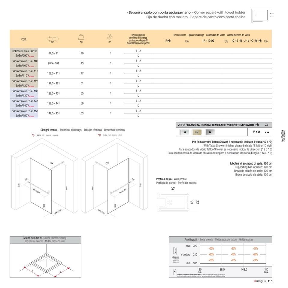 Para acabados de vidrio Tattoo Shower es necesario indicar la dirección (* S o * D)