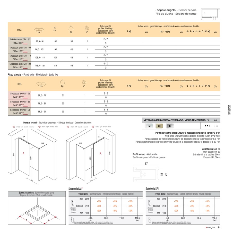 Para acabados de vidrio Tattoo Shower es necesario indicar la dirección (* S o * D)