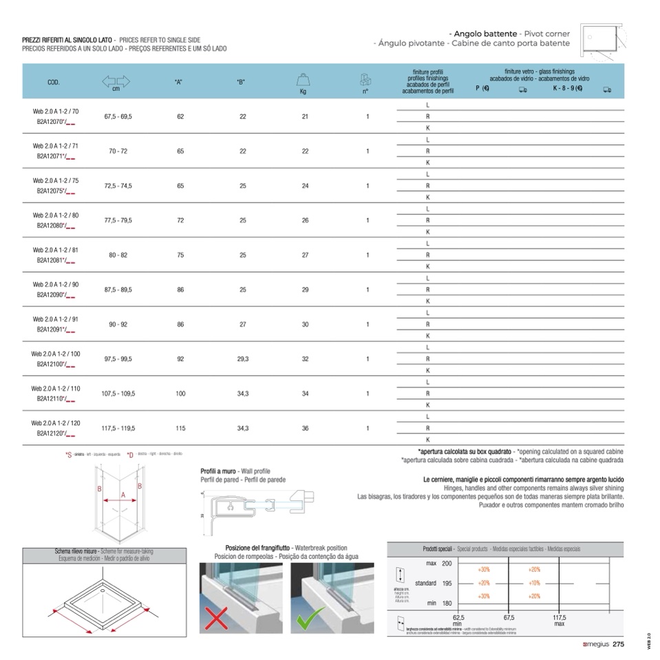 *apertura calcolata su box quadrato - *opening calculated on a squared cabine