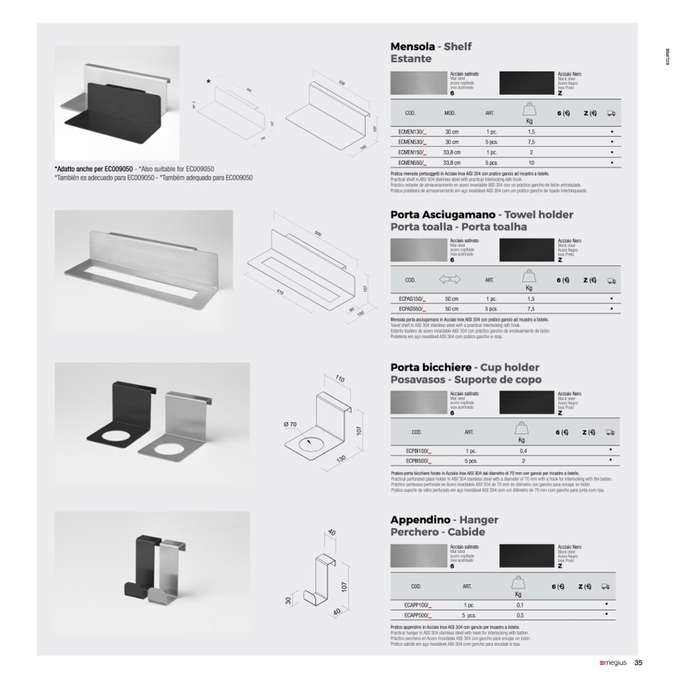Towel shelf in AISI 304 stainless steel with a practical interlocking lath hook.