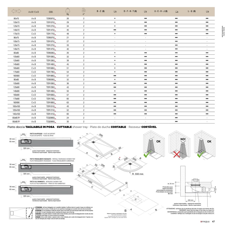 Piatto doccia TAGLIABILE IN POSA - CUTTABLE shower tray - Plato de ducha CORTABLE - Receveur CORTÁVEL