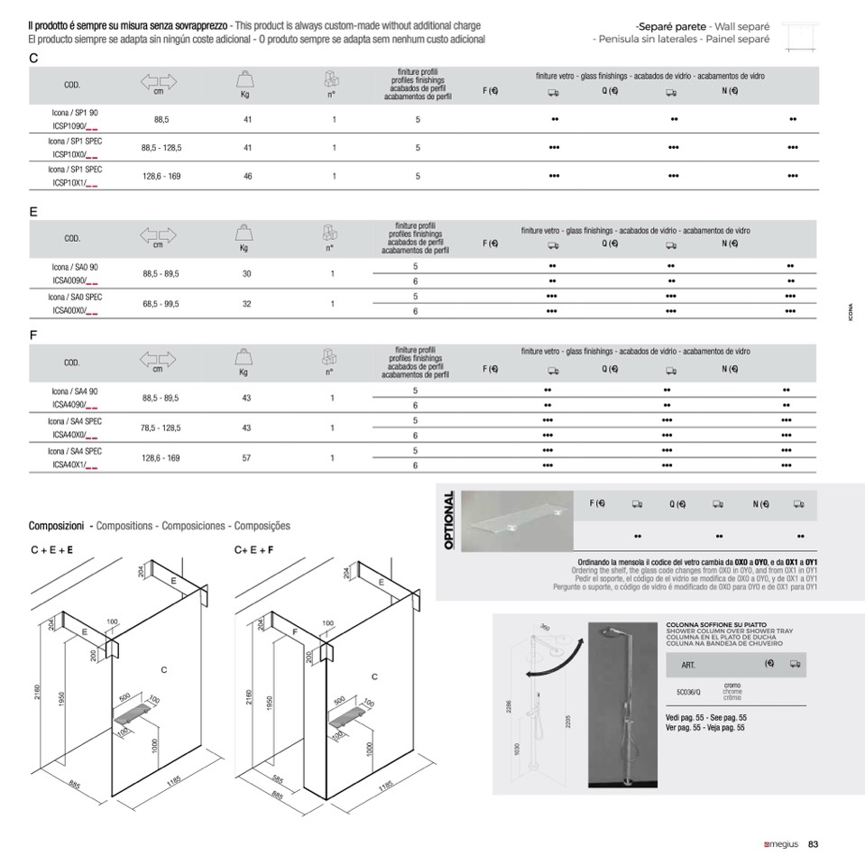 Ordinando la mensola il codice del vetro cambia da 0X0 a 0Y0, e da 0X1 a 0Y1