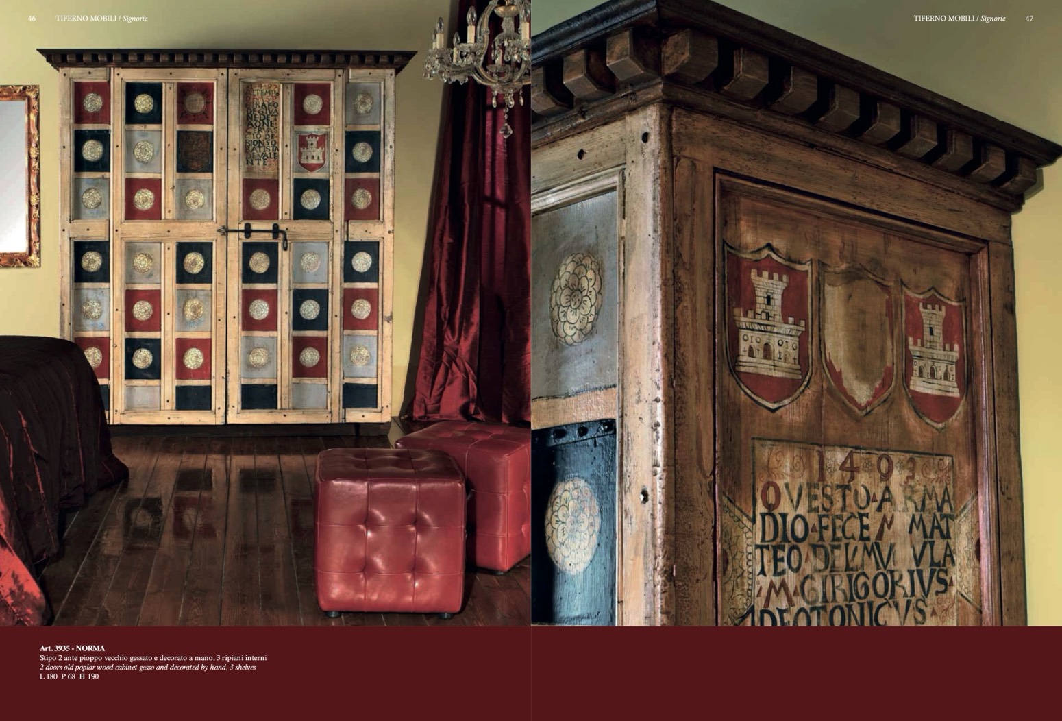 Stipo 2 ante pioppo vecchio gessato e decorato a mano, 3 ripiani interni