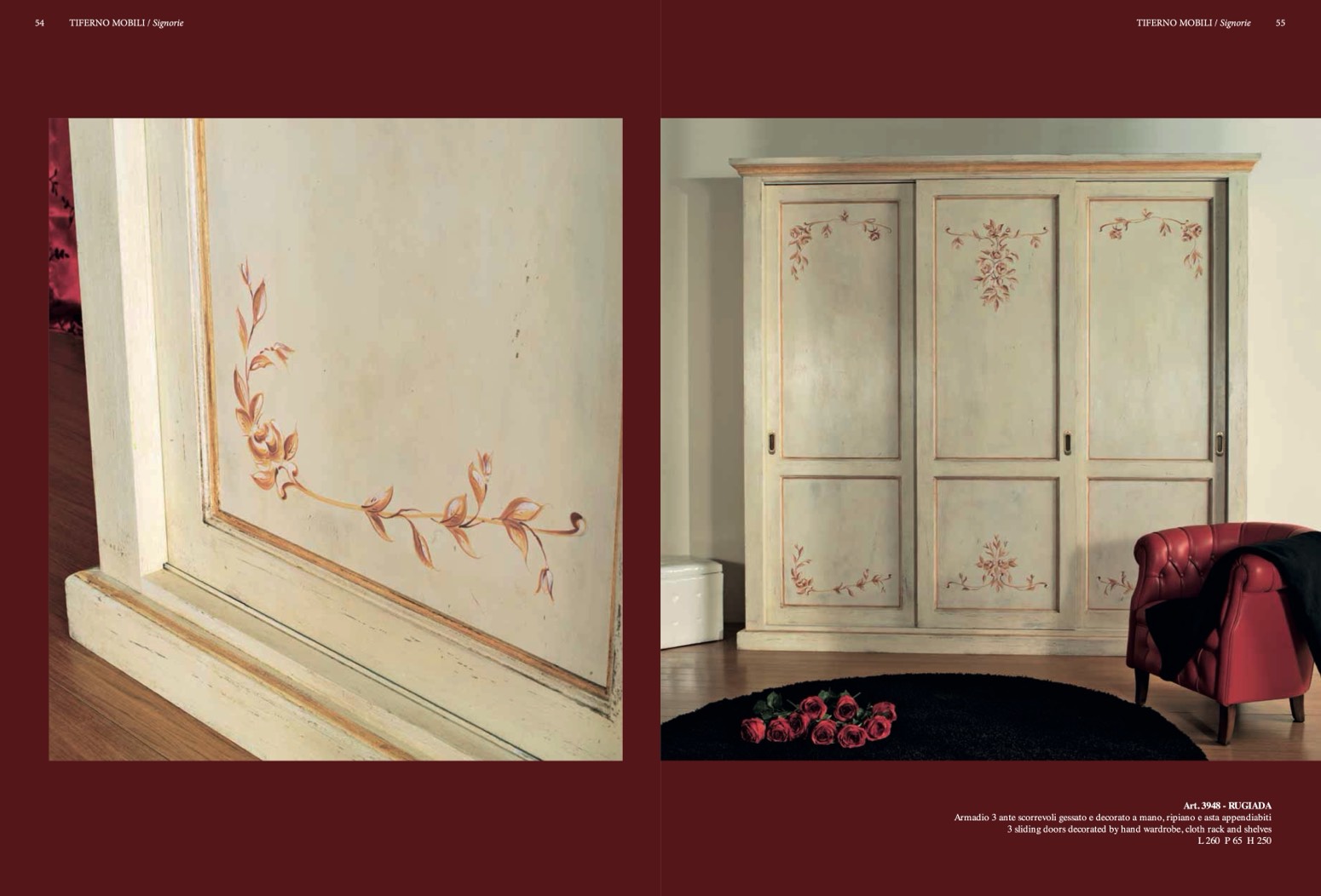 Armadio 3 ante scorrevoli gessato e decorato a mano, ripiano e asta appendiabiti