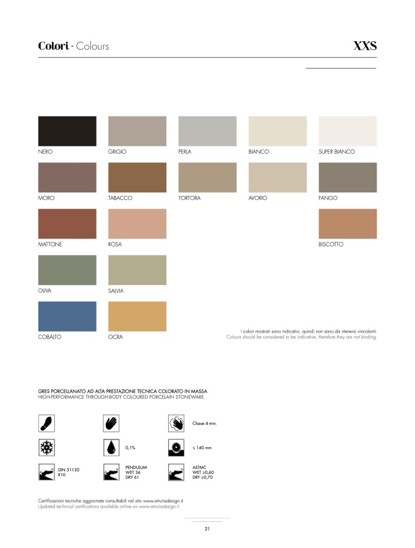 Certificazioni tecniche aggiornate consultabili nel sito www.etruriadesign.it