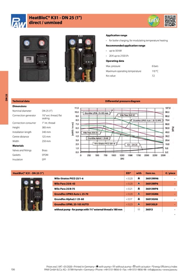 Prices excl. VAT • 01/2020 • Printed in Germany • with pump • without pump •