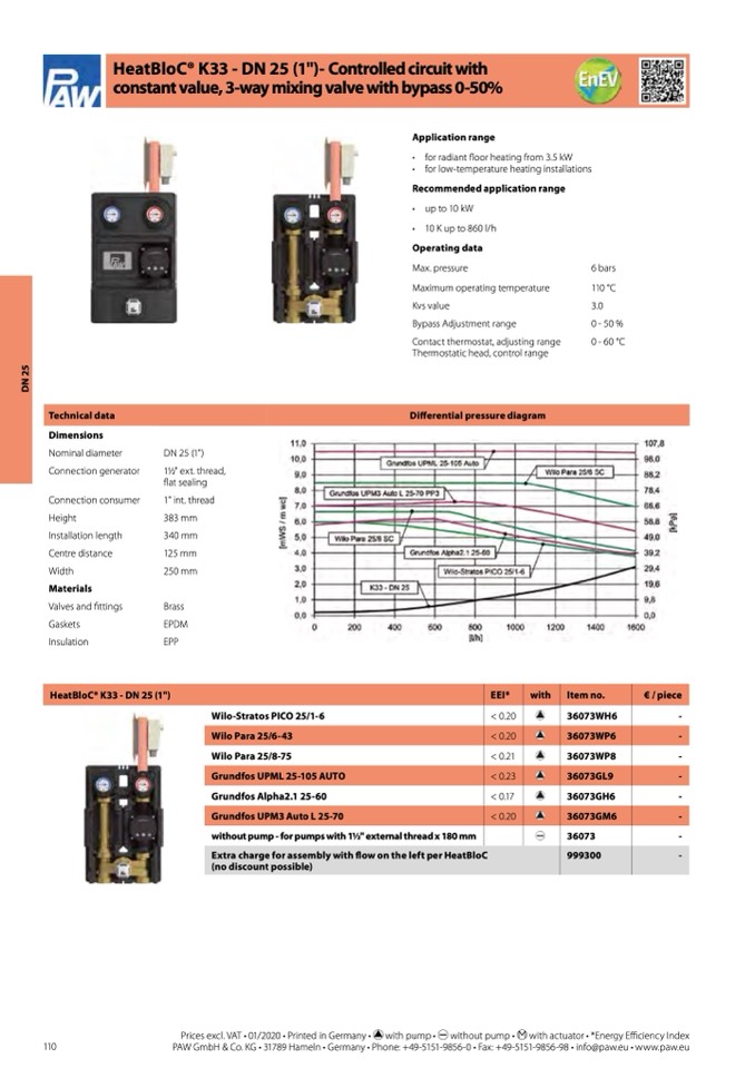 Prices excl. VAT • 01/2020 • Printed in Germany • with pump • without pump •