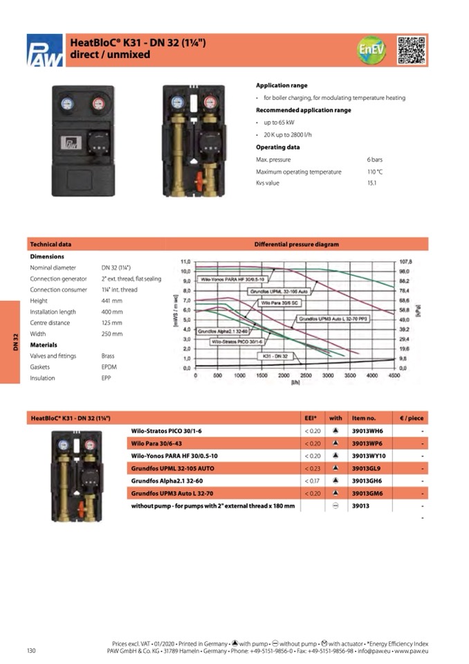 Prices excl. VAT • 01/2020 • Printed in Germany • with pump • without pump •