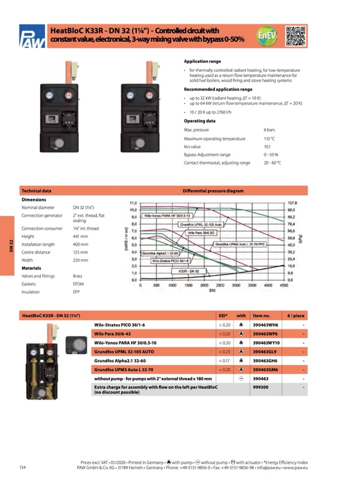 • up to 64 kW (return flow temperature maintenance, ∆T = 20 K)