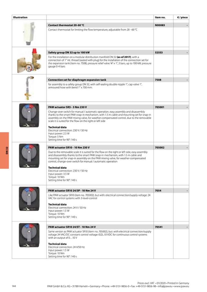Same version as PAW actuator SR10 (item no. 705002), but: with electrical connection/supply