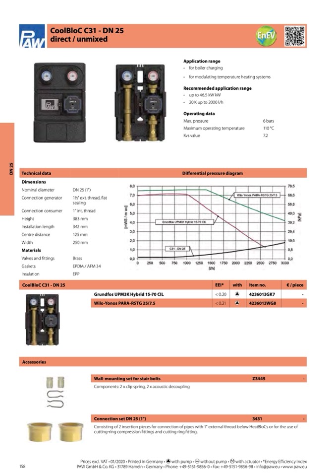 Prices excl. VAT • 01/2020 • Printed in Germany • with pump • without pump • with actuator • *Energy E