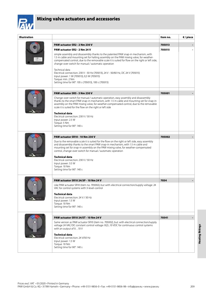 Same version as PAW actuator SR10 (item no. 705002), but: with electrical connection/supply