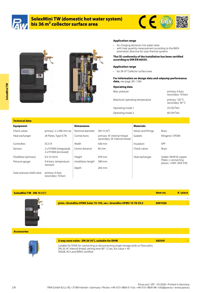 prim.: Grundfos UPM3 Solar 15-145, sec.: Grundfos UPM3 15-70 CIL3