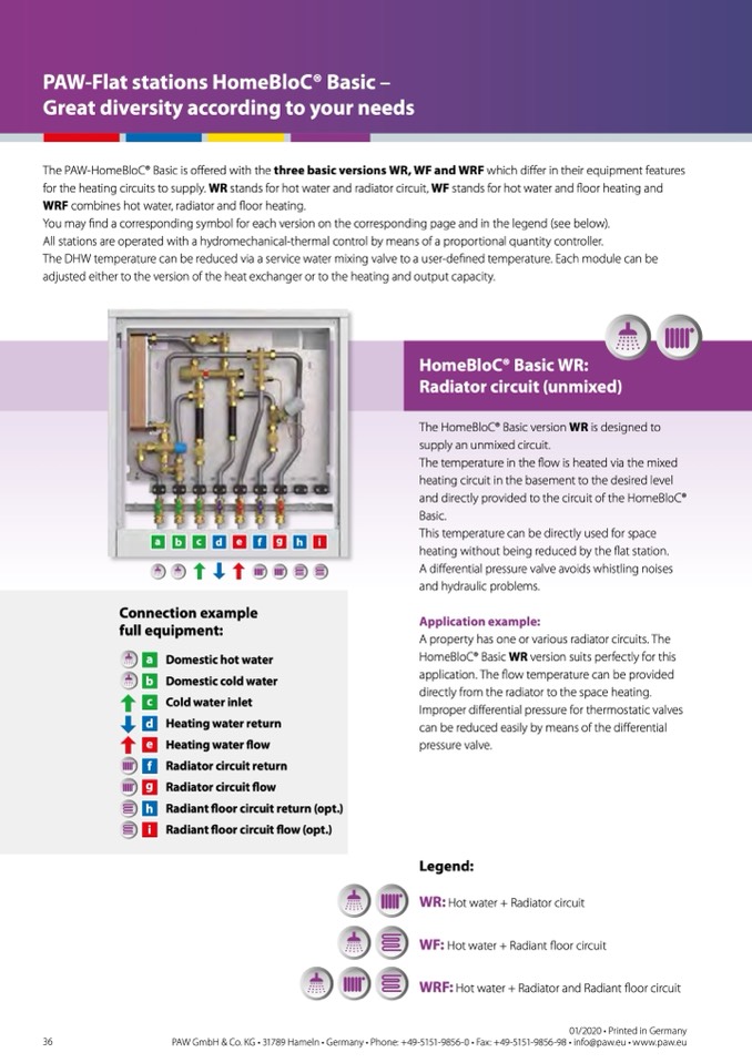 The PAW-HomeBloC® Basic is offered with the three basic versions WR, WF and WRF which differ in their equipment features