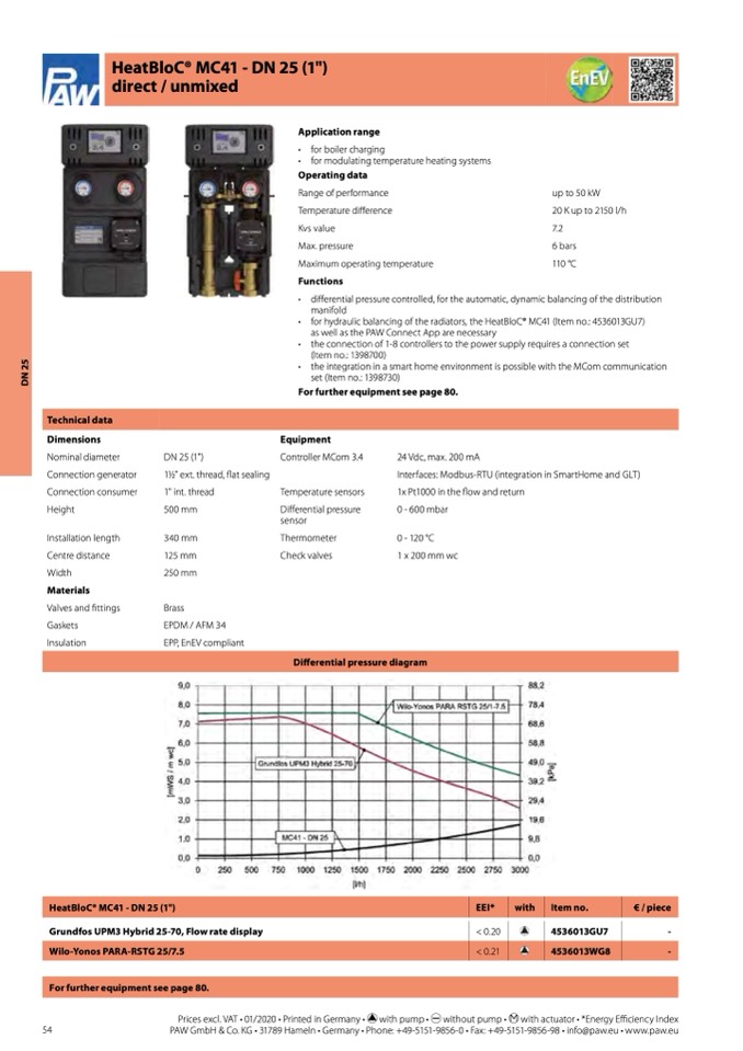 • for hydraulic balancing of the radiators, the HeatBloC® MC41 (Item no.: 4536013GU7)