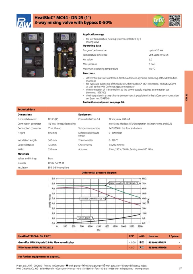 • for hydraulic balancing of the radiators, the HeatBloC® MC44 (Item no.: 4536063MGU7)