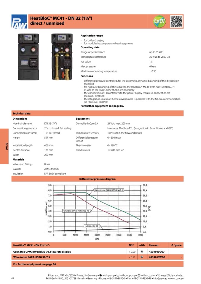• for hydraulic balancing of the radiators, the HeatBloC® MC41 (Item no.: 4539013GU7)