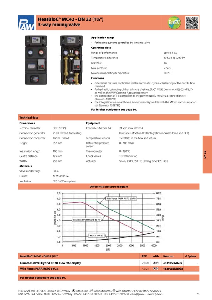 • for hydraulic balancing of the radiators, the HeatBloC® MC42 (Item no.: 4539053MGU7)